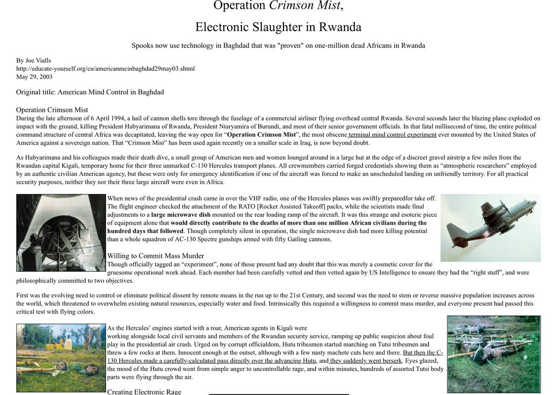 DannyUK Posted December 20, 2024 Author Share Posted December 20, 2024 (edited) Likewise research whatever you can of this yourself and come to your own conclusions… I really don't know where to put this tbh but it goes with the above "Bird Flu" type agenda I guess... More of the same absolute bullshit. Again, the contempt these people have is beyond all imagination... Also notice the terminology associated with climate/extreme weather and such that is often associated with this agenda, usually implying flooding, storms and such. This likewise is shadowed through financial crisis agendas to reshape the economic system. This psychology is all agenda driven!! It is being used subconsciously as a trigger for agenda driven goals - events etc https://www.tyla.com/life/winter-illnesses-in-uk-right-now-692229-20241212?fbclid=IwZXh0bgNhZW0CMTEAAR0XX4pBYEN733QBrgR4GLiQpMsZ_V4jOBlN2fTFCFJCXuBy0O_0t1NW4Es_aem_9I1DUI30_fT6jKI8sqoSkg 'A pro-vaccine doctor, who used social media to shame people who were not Jabbed with COVID mRNA shots, has died suddenly at just 43 years old leaving 2 children. Dr. Vicky Jennings reportedly dropped dead after suffering a sudden heart attack. According to reports, she was presumed to be in good health when she died and was not suffering from any illnesses and kept up to date with all of her shots with a total of 6. Jennings, an internationally recognized trauma surgeon, was said to be a fitness enthusiast and enjoyed several sports in her free time, including running and swimming. ' Doctor who labelled Covid vaccines 'crime of the century' scores huge legal win after he was banned from practising https://www.google.com/amp/s/www.dailymail.co.uk/news/article-14200005/amp/William-Bay-Covid-vaccine-ban-win.html https://www.google.com/amp/s/www.thesun.co.uk/health/32328052/hundreds-sick-dancing-disease-dinga-dinga-uganda/amp/ 'A Skylark wounded in the wing A Cherubim does cease to sing The Game Cock clipd & armd for fight Does the Rising Sun affright Every Wolfs & Lions howl Raises from Hell a Human Soul The wild deer, wandring here & there Keeps the Human Soul from Care The Lamb misusd breeds Public Strife And yet forgives the Butchers knife The Bat that flits at close of Eve Has left the Brain that wont Believe' The Deer Hunter Rwanda Example - “Technical Mass Suicide” - Genocide Likewise, I’m sure all this SMART Grid - Technocracy - Hive Mind Electric Grid designed to save us all from “Climate Change” - being instigated through geoengineering - has nothing to do with this. Removing the farmers from many of these lands so such infrastructure can be introduced as “sustainable” energy solutions. Really, much of this infrastructure are weapons and tools of surveillance for the SMART Grid. These are mechanisms of control and conformity which aid the interests of Global Government - Death Cult Agendas Quote Listen here instead or alongside the text - page below “Operation Crimson Mist… mind control through mandatory vaccination forming crystals in the brain to act as micro receivers for radio waves” CIAs "Operation Crimson Mist" (Rwanda) ELF Microwave Weapons T.I. (Targeted Individual) Gangstalking What led to the genocide in Rwanda? Operation Crimson Mist, Electronic Slaughter in Rwanda Spooks now use technology in Baghdad that was "proven" on one-million dead Africans in Rwanda https://educate-yourself.org/cn/americanmcinbaghdad29may03.shtml?fbclid=IwZXh0bgNhZW0CMTEAAR3TTJJME1LSHuT8sXY0hQ8kNcMKjaqsRimTUveYDmGN46up47GpEiCN4Lc_aem_ZmFrZWR1bW15MTZieXRlcw On a less serious note… Just a few typical examples that come to mind Dancing Disease Quote Avicii - Levels Body Rockers - I like the way you move Nicky Romero - Toulouse [Official Video] (Original Mix) (Guy Fawkes mask) "The Land of Milk and Honey - Ministry of Plenty" Edited December 20, 2024 by DannyUK 2 Quote Link to comment Share on other sites More sharing options...
