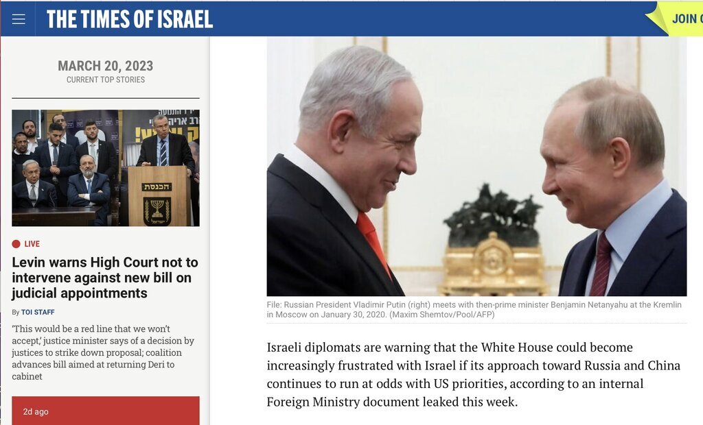 EnigmaticWorld Posted March 10, 2024 Share Posted March 10, 2024 U.S. Officials Angry: Israel Doesn’t Back Stance on Russia https://www.haaretz.com/2014-04-13/ty-article/.premium/u-s-angry-at-israel-for-silence-on-ukraine/ How Chinese firm linked to repression of Uyghurs aids Israeli surveillance in West Bank https://www.theguardian.com/technology/2023/nov/11/west-bank-palestinians-surveillance-cameras-hikvision Quote Link to comment Share on other sites More sharing options...